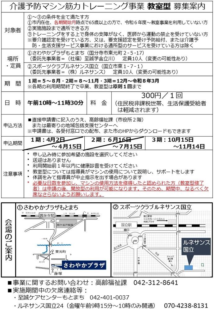 (2)スポーツクラブルネサンス国立24 住所:国立市東1-7-1[委託先事業者=(株)ルネサンス]