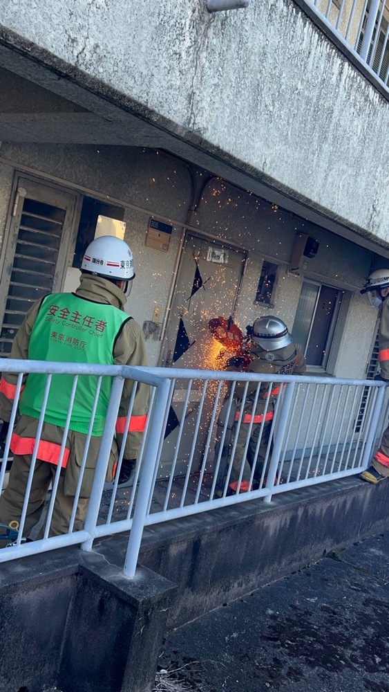 【訓練内容】ドアの切断、窓ガラスの破壊、居室内検索救助訓練など